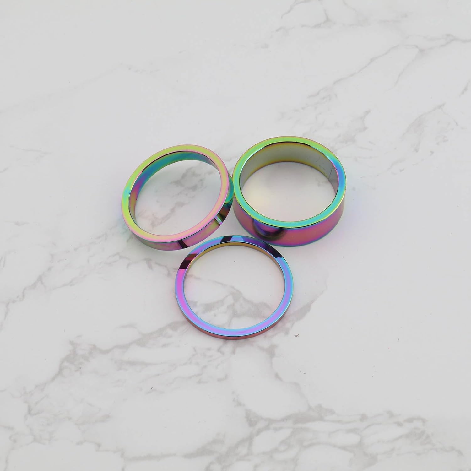 Alloy headset spacers in various sizes.